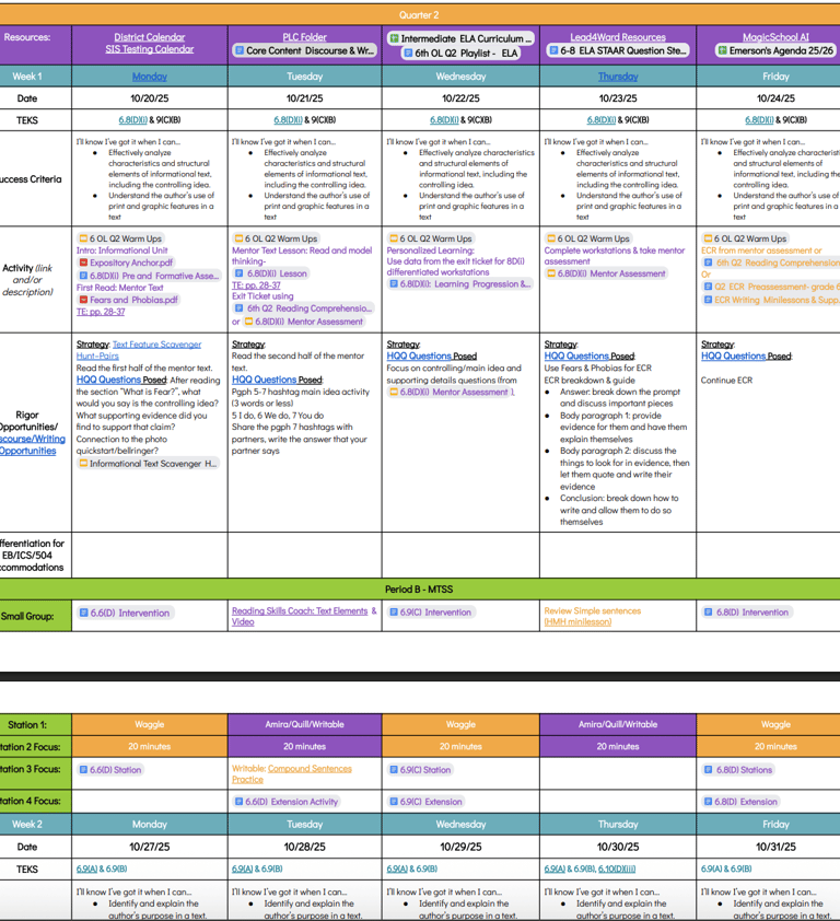 Detailed planning documents I've developed to support diverse learning needs and outcomes.